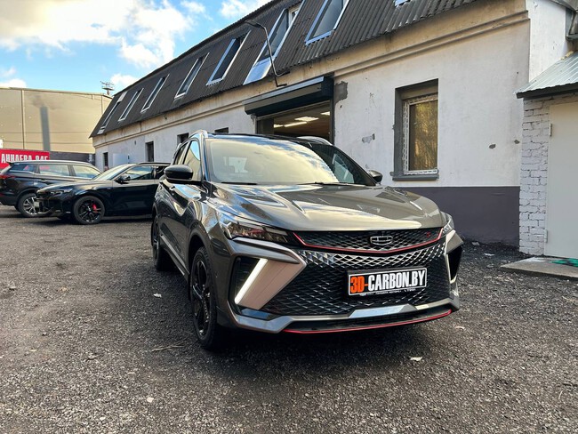 Оклейка Geely Coolray NEW антигравийной полиуретановой пленкой в Минске по низкой цене. Защита пленкой Geely Coolray NEW.